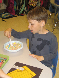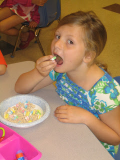 As a special surprise, we ate breakfast together that morning -- Lucky Charms, of course! Yum!!